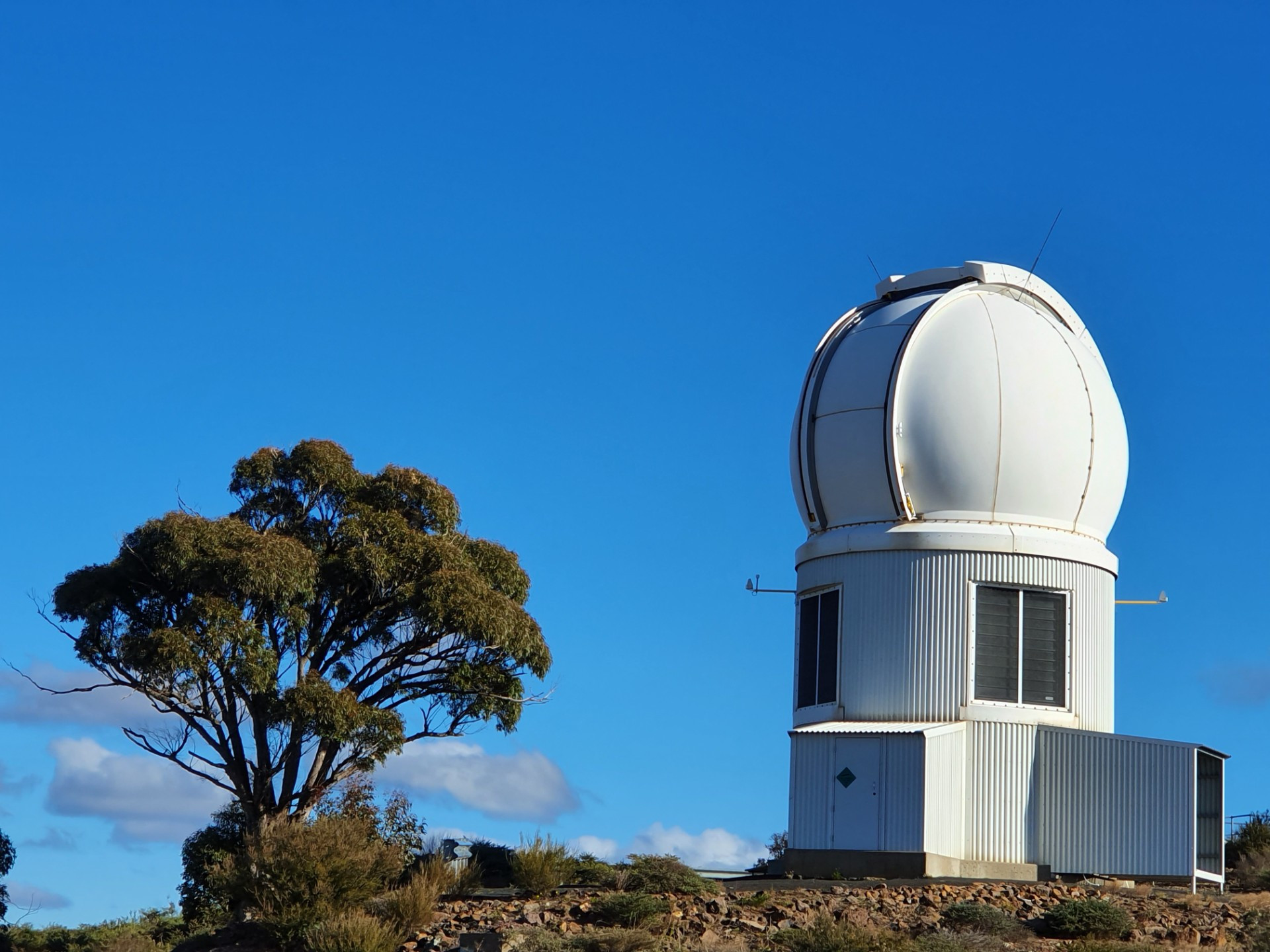 This photograph shows the 24" observatory with the 2.3m ANU observatory behind to the right.